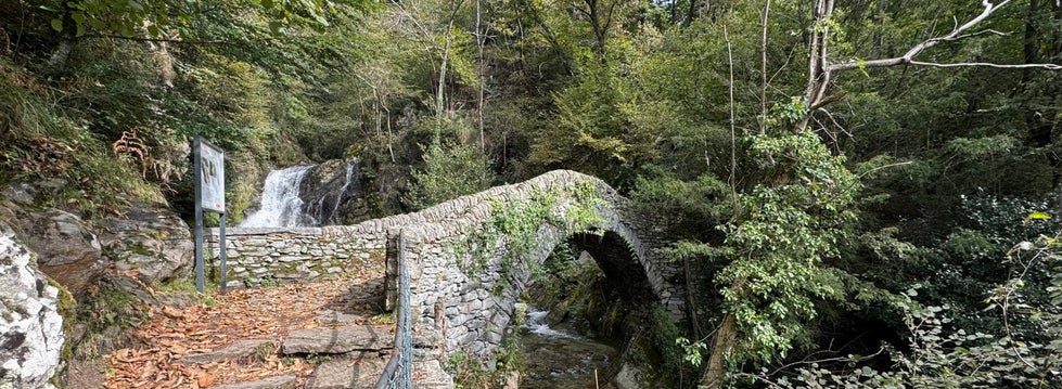 Nach dem Mittag erreichen wir unser Ziel: ein Platz mit weiter Aussicht, Bänken im Grünen und dem Rauschen eines Baches. Das Grotto al Ritrovo ist geschlossen, doch wir haben unser eigenes Essen dabei.